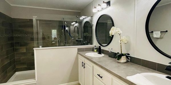 The home includes a master suite with a double-vanity bathroom and its own private entrance-perfect for offering excellent income to offset the lot rent or provide independent space for family members.